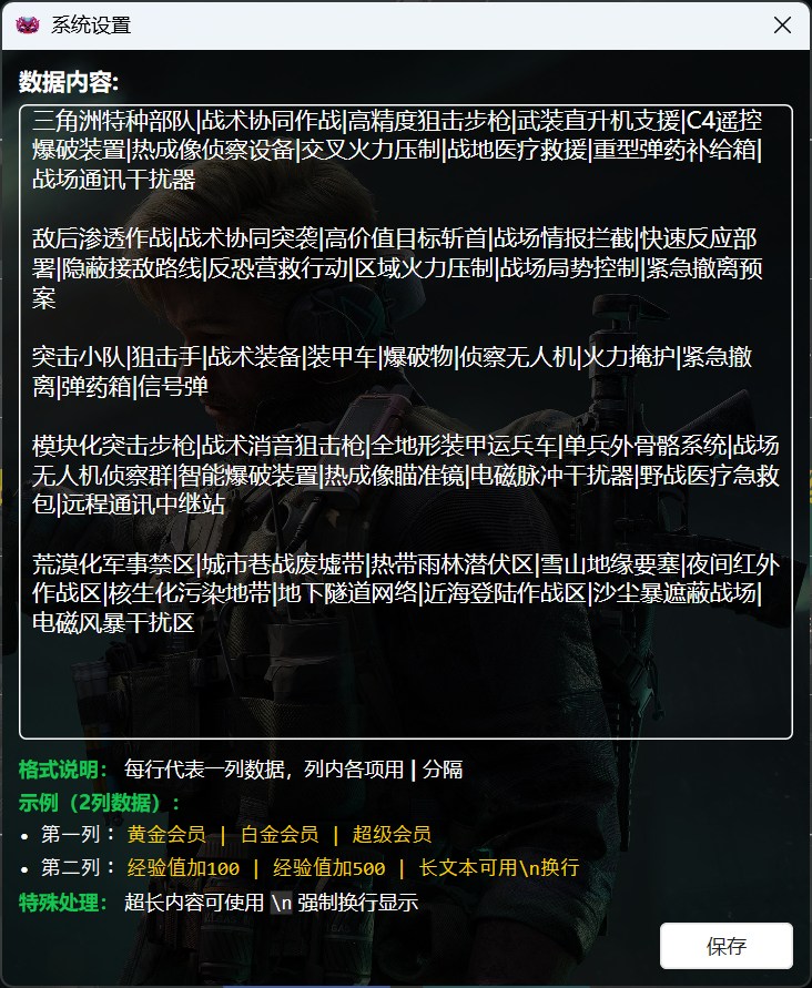 WPF framework is used to realize smooth animation effects and responsive interaction, and the data layer supports dynamic loading of content, the following is the sample data: