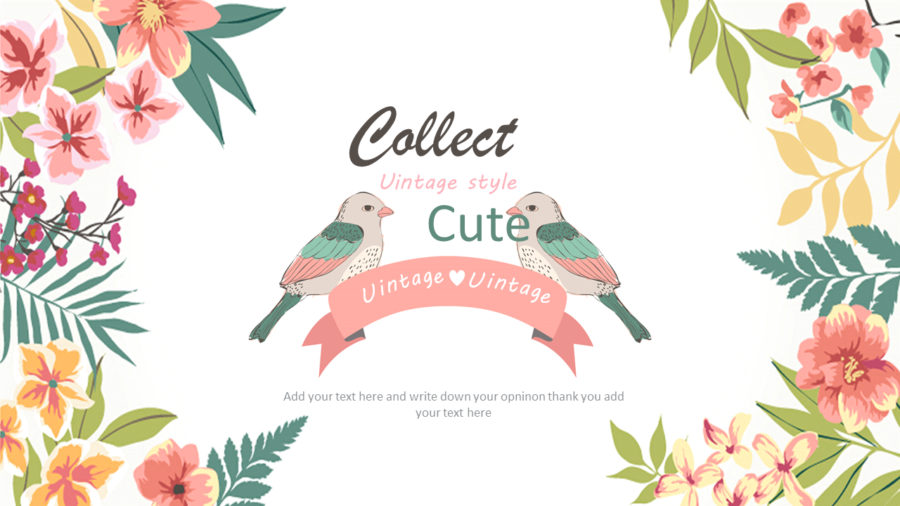小清新复古欧式花鸟PPT模板