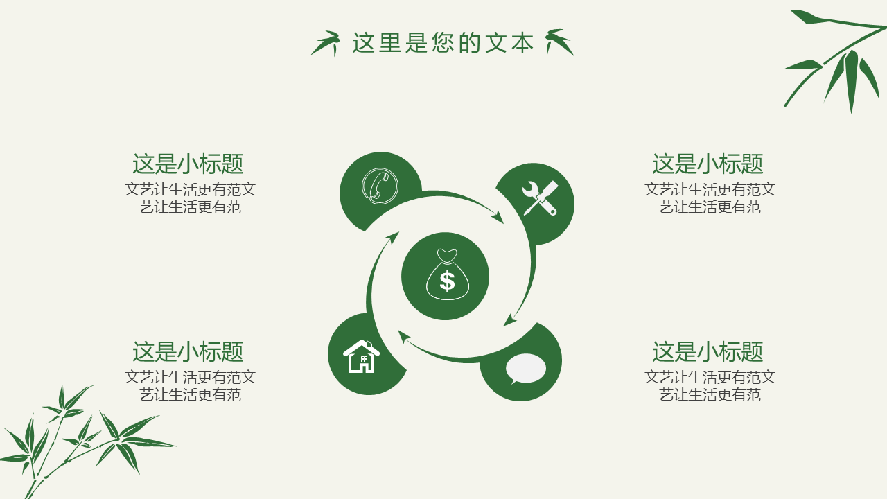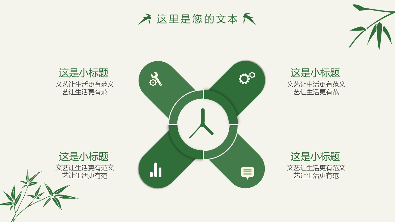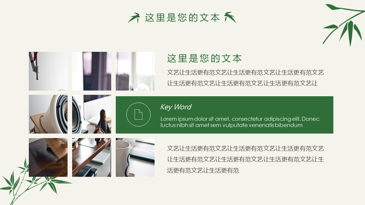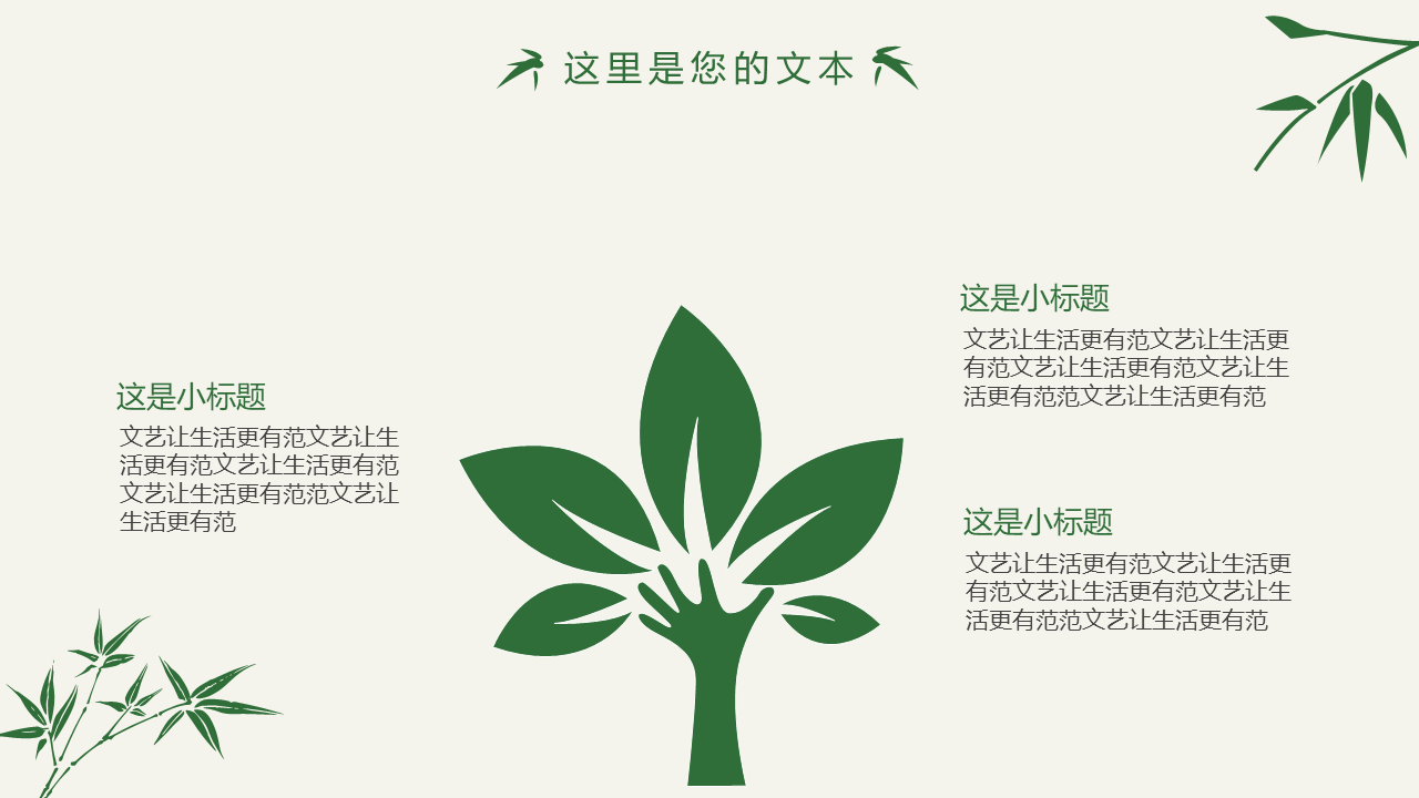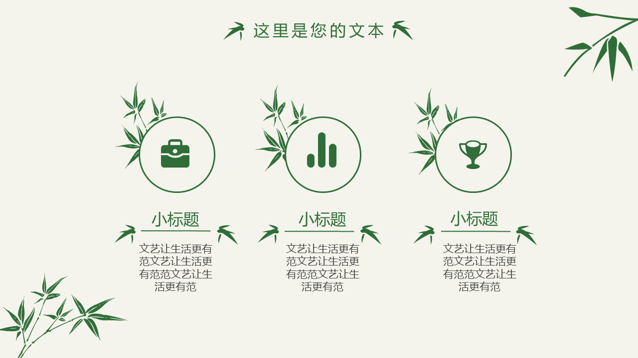清新简约竹子竹叶PPT模板