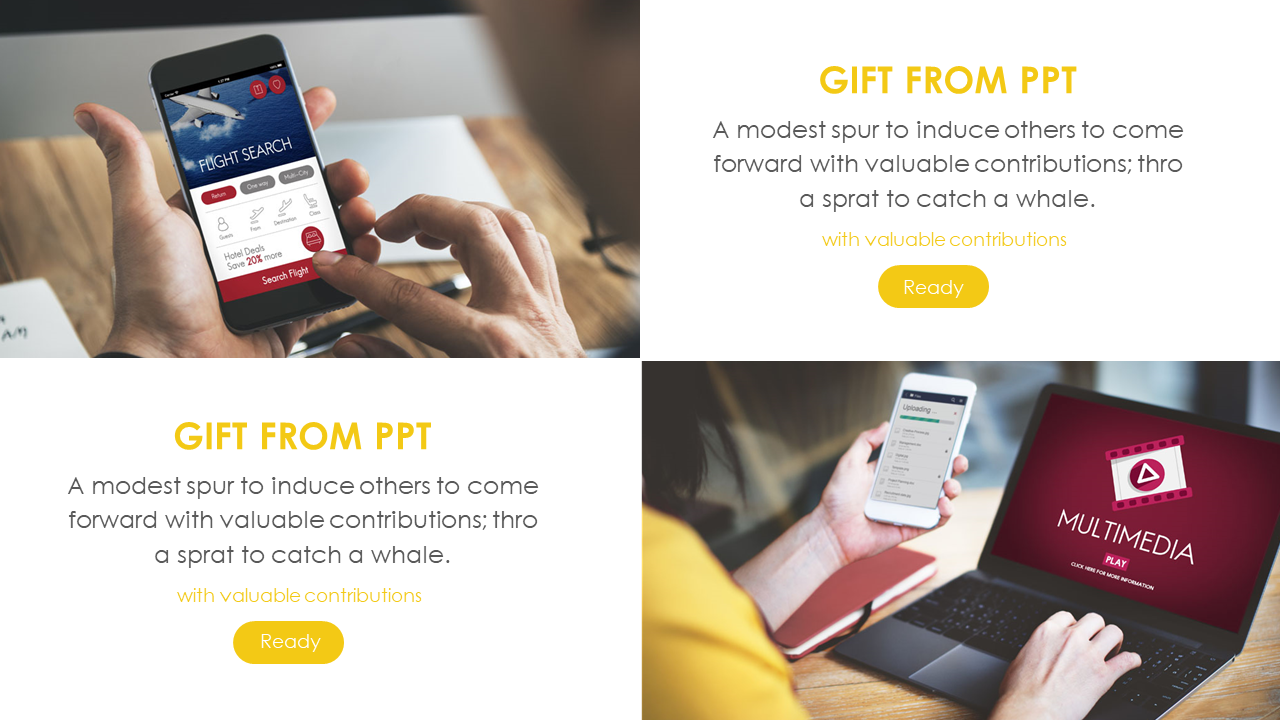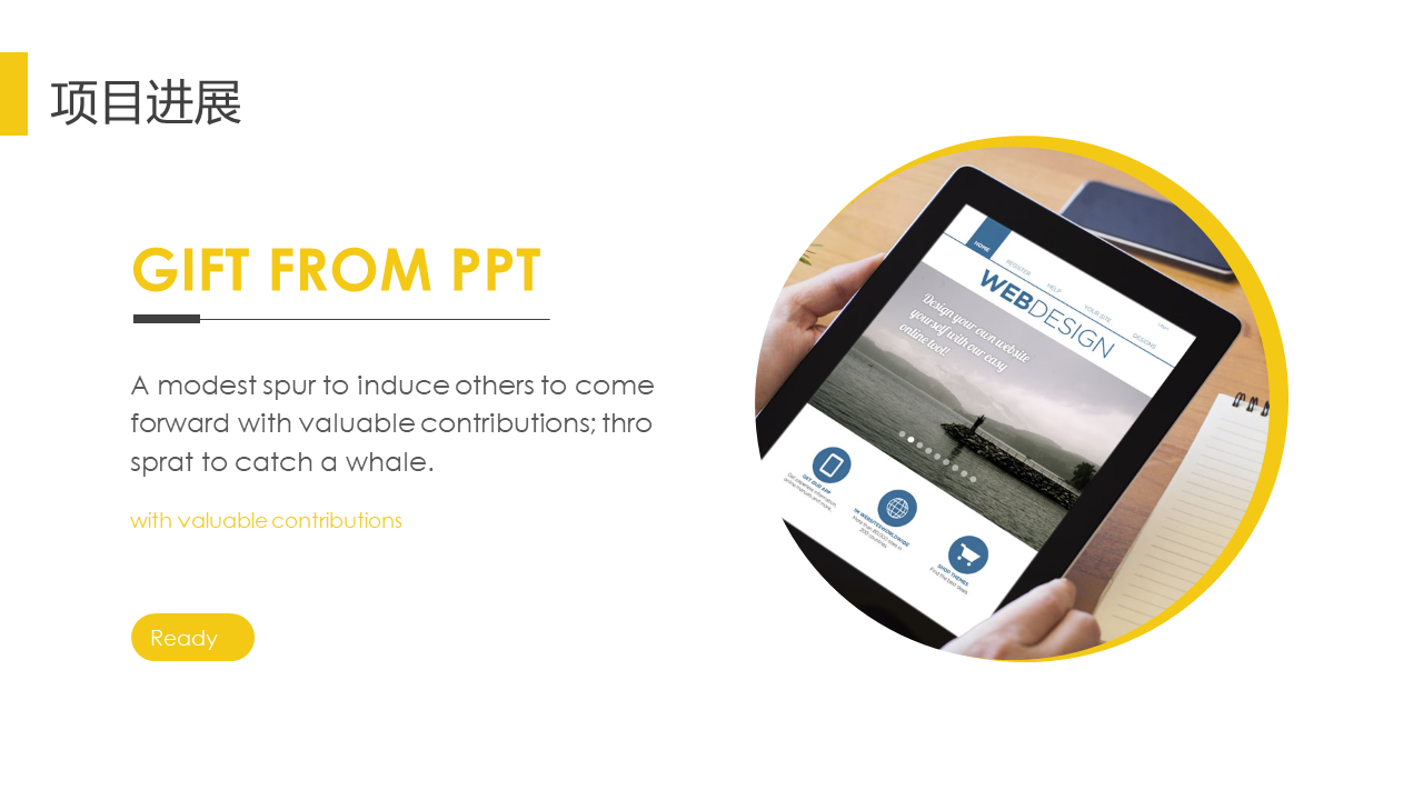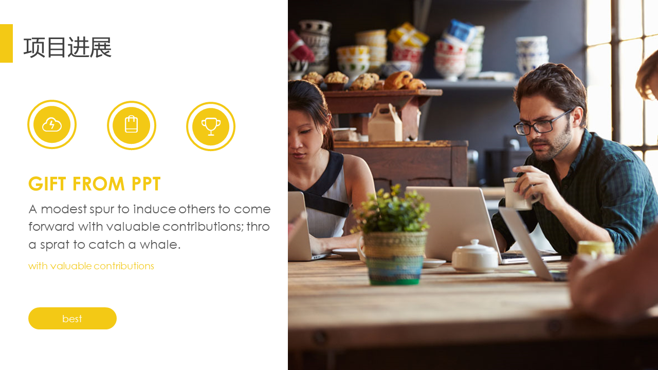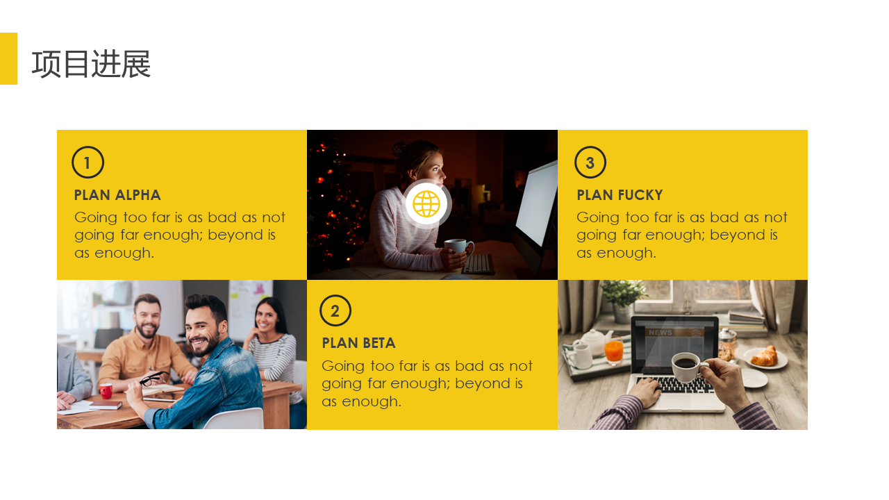 黄色扁平化杂志风商务PPT模板